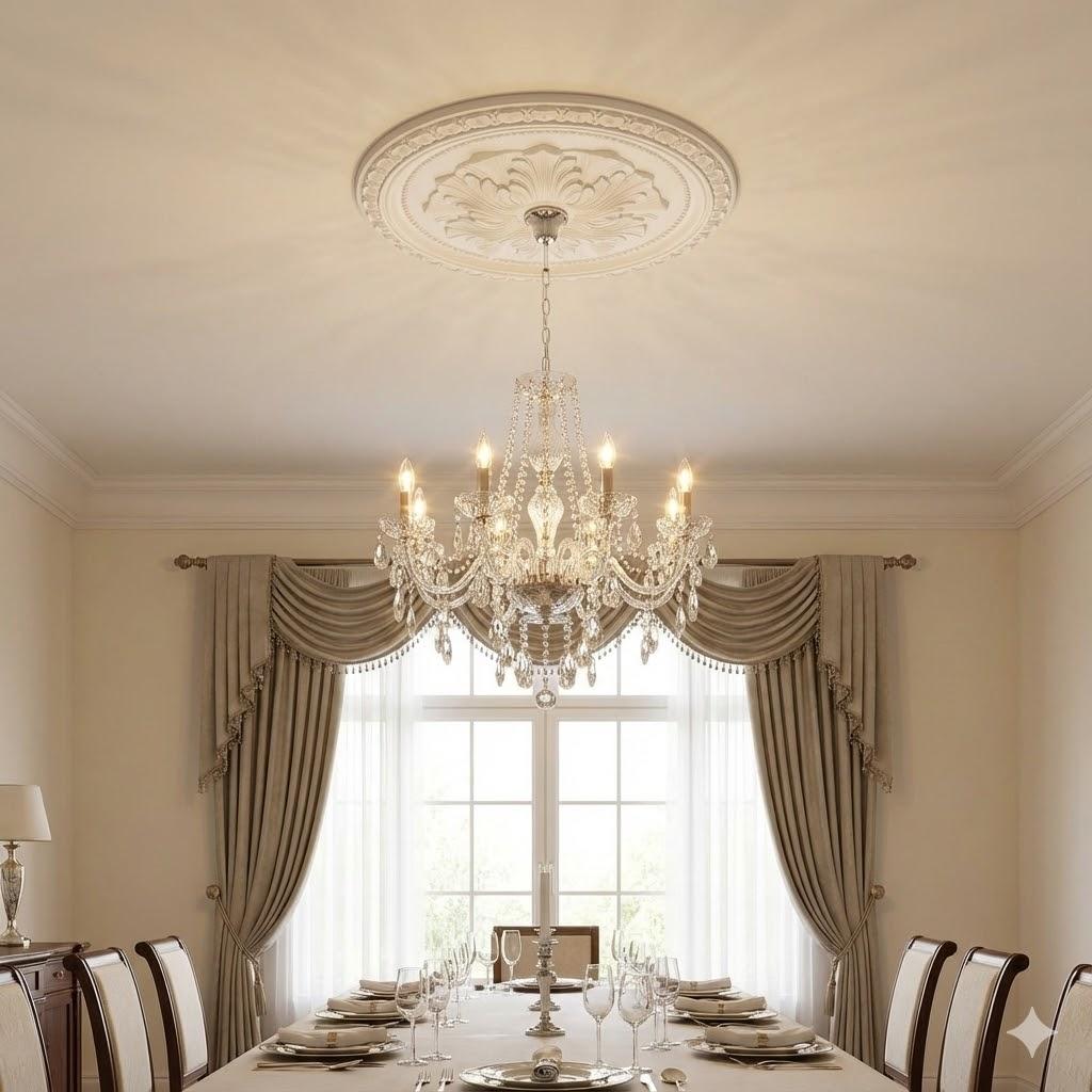 Perfectly sized for small to medium rooms, this ceiling rose adds a decorative flourish to living areas, hallways, or bedrooms.